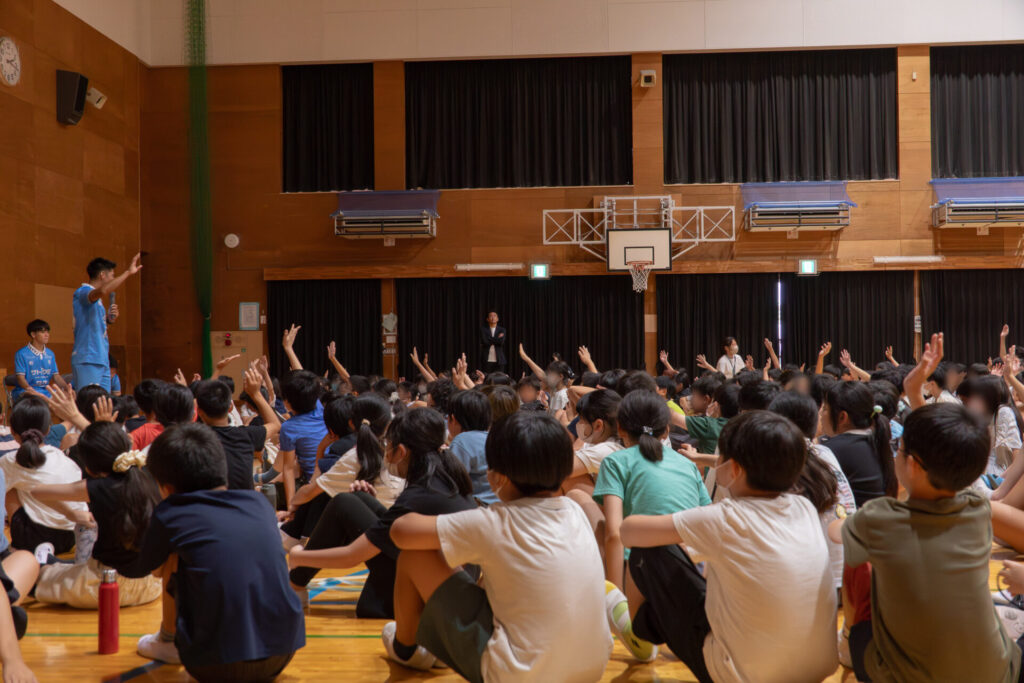 対象は5年生と6年生で総勢約600名という日本でも公立の中では1位か2位の生徒数を抱える小学校です。人数に対しということもありましたが、僕の先の理想は「他の選手の話」も聞いてほしい、そして選手に話してほしいと思い今回5名を連れていきました。